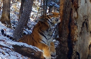 Влюбился в дерево: редкая пихта покорила амурского тигра в заповеднике Приморья
