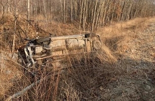 Водитель за рулем Toyota Ipsum улетел в кювет на трассе Приморья