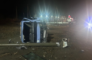 ДТП произошло ночью: машина на высокой скорости врезалась в опору столба