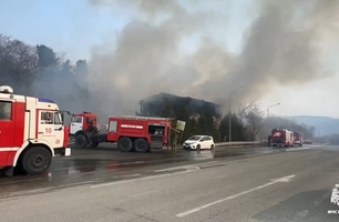 Мощный пожар уничтожил кафе и транспортную компанию во Владивостоке