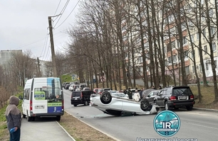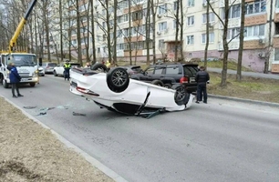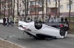 Очевидцы помогли водителю выбраться из перевернувшейся машины.
