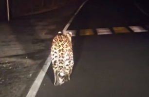 Молодой леопард устроил прогулку вдоль проезжей части в Приморье