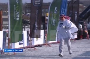 Арабский шейх вышел на дистанцию ледового забега на Русском острове