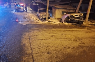 Авто занесло у частного дома на Октябрьской