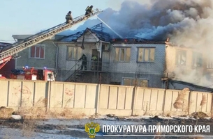 Двухэтажный склад с тканями горит на 120 квадратных метрах в Находке