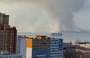 Огромный столб дыма на другой стороне Амурского залива видно издалека