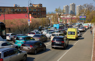 Во Владивостоке оштрафовали таксиста за объезд пробки по тротуару
