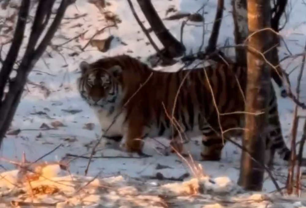«Всё, он сейчас прыгнет»: жительница Приморья встретила амурского тигра