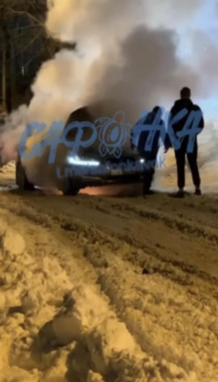 Во Владивостоке автомобиль загорелся при попытке преодолеть скользкий склон