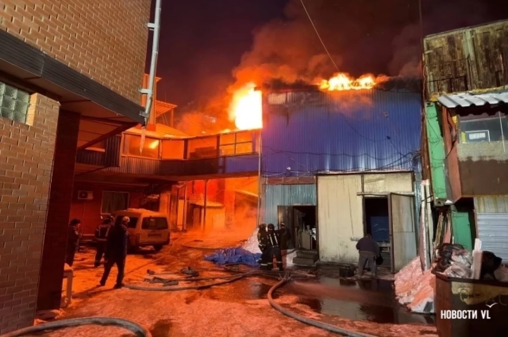 Во Владивостоке на Пограничной горит склад мебели, район окутал чёрный дым