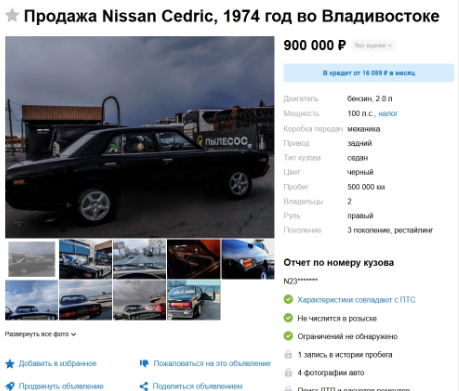Коллекционную "японку" бизнес-класса продают за 900 тысяч во Владивостоке