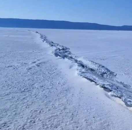 Огромная трещина образовалась на льду Амурского залива