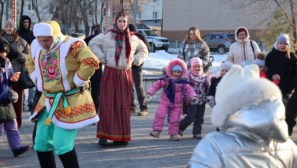 Емеля, Вовка из тридевятого царства и юные артисты провели 4 день Масленицы в Уссурийске