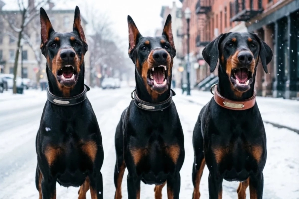 Очевидцы утверждают, что доберманы свободно бегали по улице.