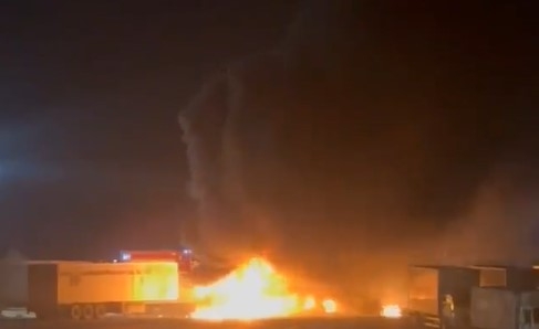 Фура сгорела на парковке оптового центра в Приморье