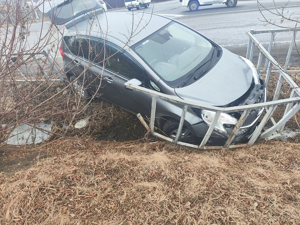 На Московской в Уссурийске водитель снес леерное ограждение у перехода
