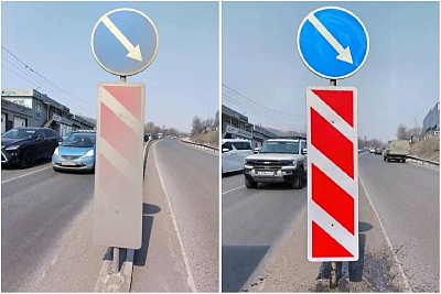 Дорожники Владивостока вышли на помывку знаков после зимы