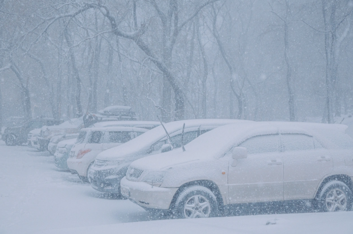 Девятибалльные пробки и метель: Уссурийск накрыло весенним снегопадом