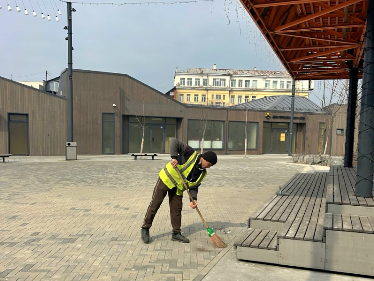 Специалисты очищают урны, убирают дорожки и аллеи от мусора и грязи, моют парковое оборудование и стирают надписи