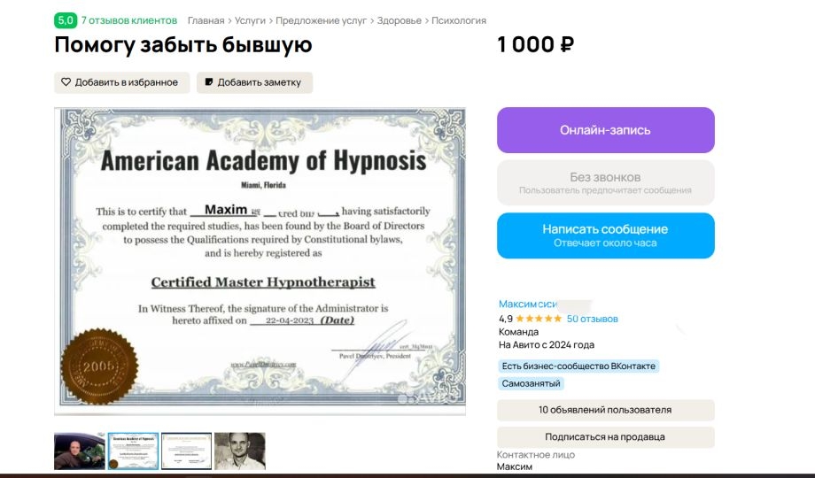 Скуф, гипноз и бывшие: житель Владивостока нашел способ заработать на чужой боли