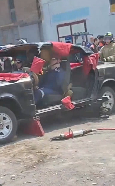 "Счет шел на минуты": спасатели деблокировали "пострадавших" из автомобиля (Видео)
