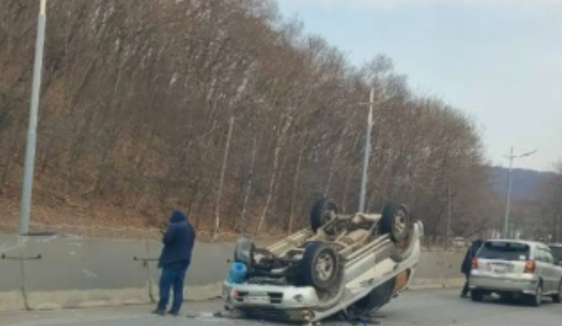 Автомобиль перевернулся на крышу, образовалась гигантская автопробка (видео)