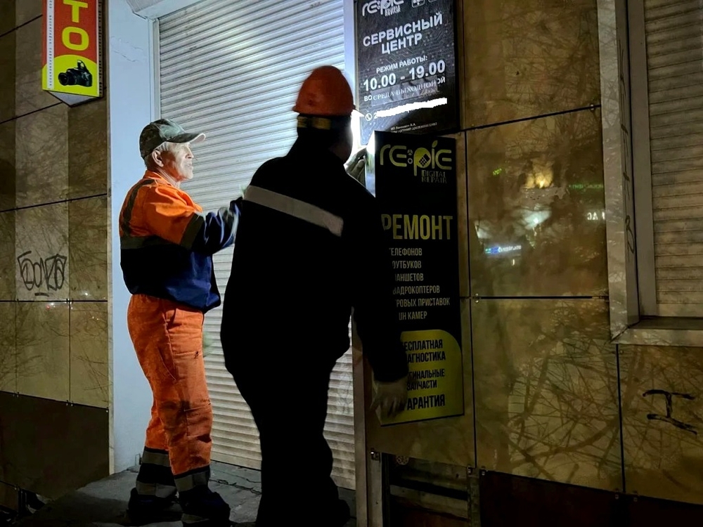 Минувшей ночью сразу по нескольким адресам проходил демонтаж самовольно установленных на фасадах зданий рекламных конструкций