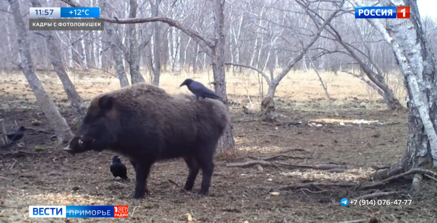 Вороны устроили массаж кабанам в Приморье