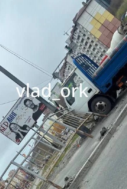 Грузовик снес леера, вылетел на тротуар и замер (фото)