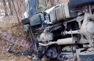 "Колесами в небо": большегруз вылетел с трассы под Владивостоком - водитель без сознания