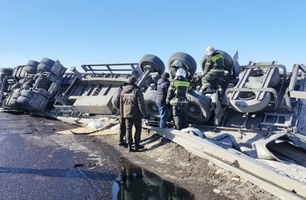 Автогигант перевернулся на трассе Владивосток - Хабаровск