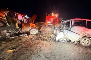 Водитель Mazda Demio выехал на встречную полосу и столкнулся с Toyota Yaris