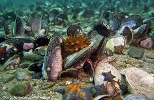 Трепанг, мидии и морские звезды попали на одно фото