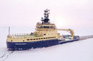 Военный ледокол спас из ледового плена зажатый льдами теплоход
