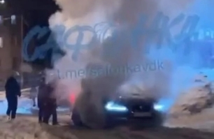 Огненный штурм: авто загорелось при попытке забраться на заснеженный склон во Владивостоке