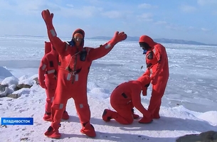 Репортаж. В Амурском заливе кроме тюленей, наваги и корюшки замечены люди в ярко-красных костюмах