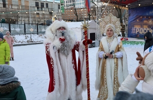 На открытии городка юные гости водили хоровод с Дедом Морозом и Снегурочкой